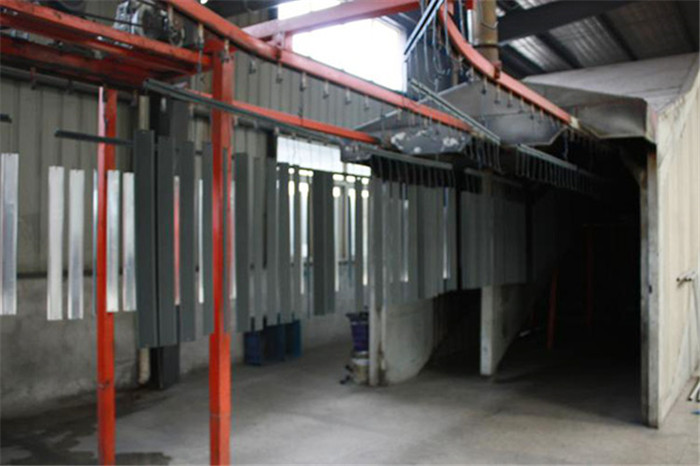 3、目前我廠(chǎng)已有靜(jìng)電噴塑機10台,自動生產線一條箱式麵包爐一台,全自動噴槍(qiāng)4台(tái)套,粉末自動回(huí)收4台套。生產線的(de)同時生產4種顏色,大大提高(gāo)了生產效率(lǜ)。